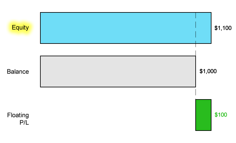 The Equity reflects the real-time calculation of your profit/loss. The account equity or simply “Equity” represents the current value of your trading account. Equity is the current value of the account and fluctuates with every tick when looking at your trading platform on your screen. It is the sum of your account balance and all floating (unrealized) profits or losses associated with your open positions.